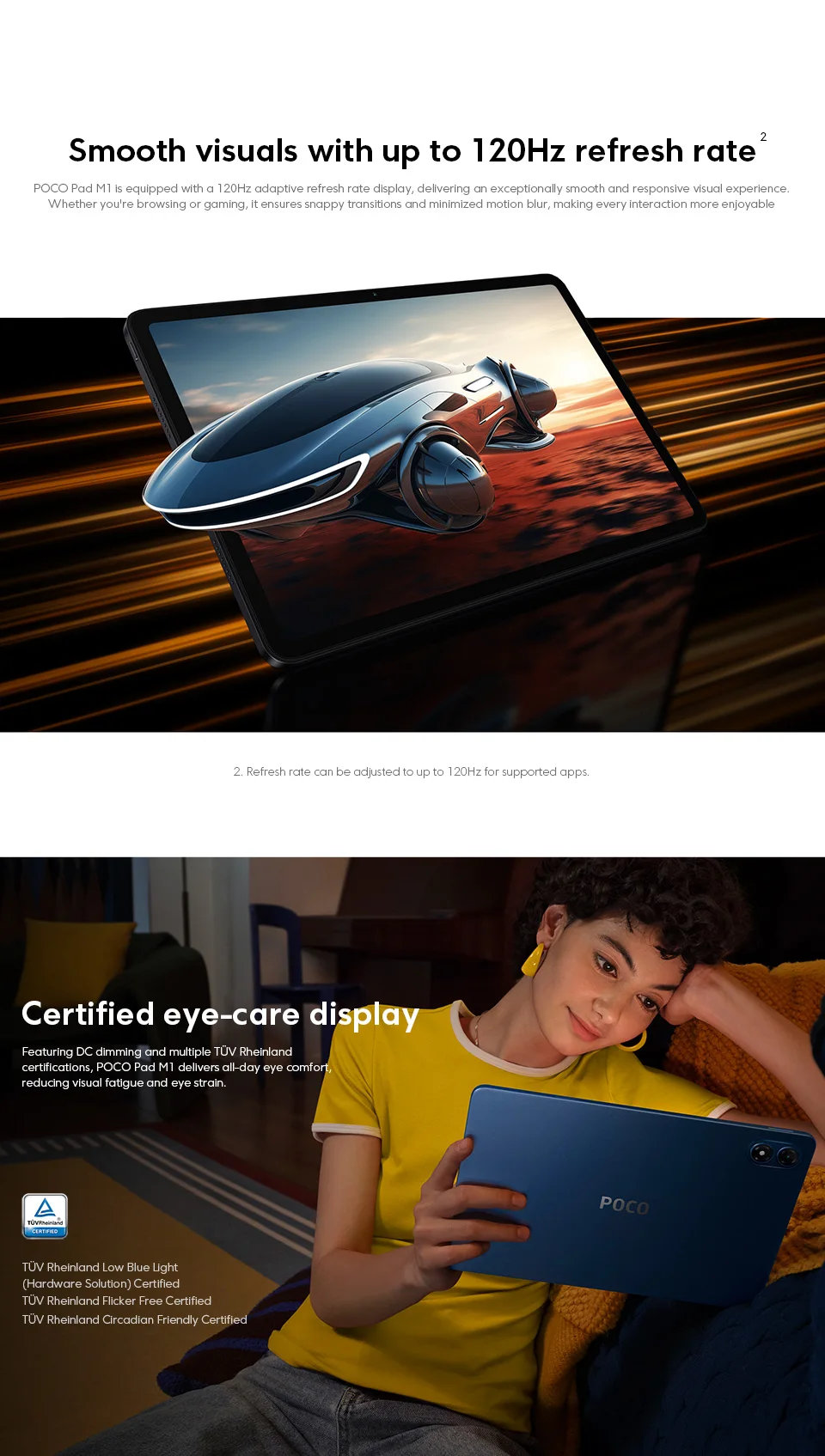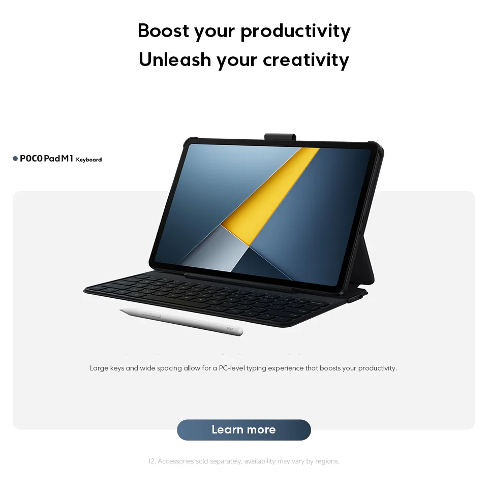 Experience the ultimate performance with the POCO Pad M1 Global Version Tablet featuring Snapdragon 7s Gen 4 processor, high-resolution 12.1” display, and a massive 12000mAh battery with fast charging support.