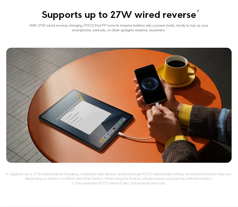Battery ——- 12000mAh (typ) battery, Supports 33W fast charging, Up to 27W reverse charging