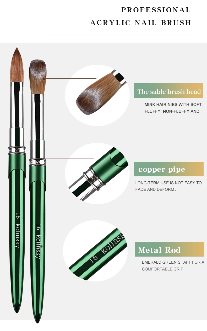 Enhance your nail art with this professional-grade kolinsky acrylic nail brush. Crafted with high-quality materials, this tool ensures precise application for flawless results.