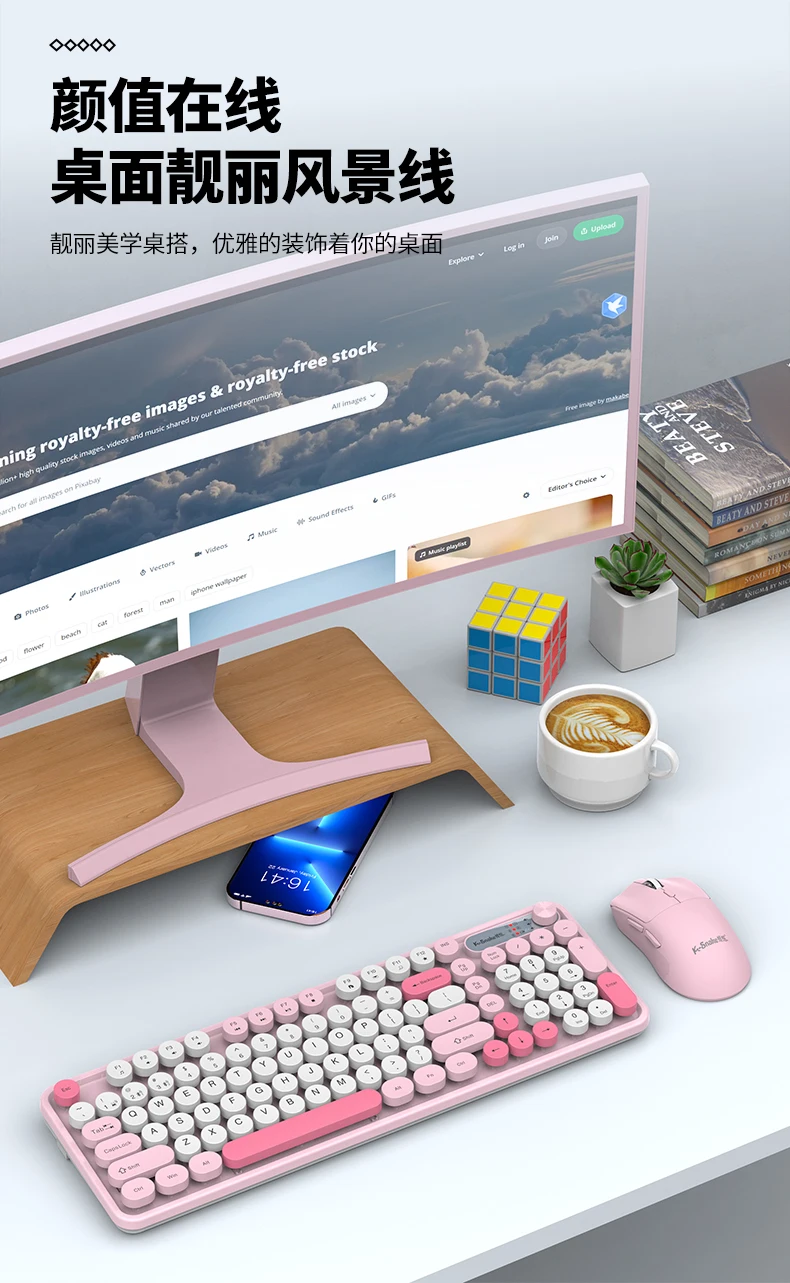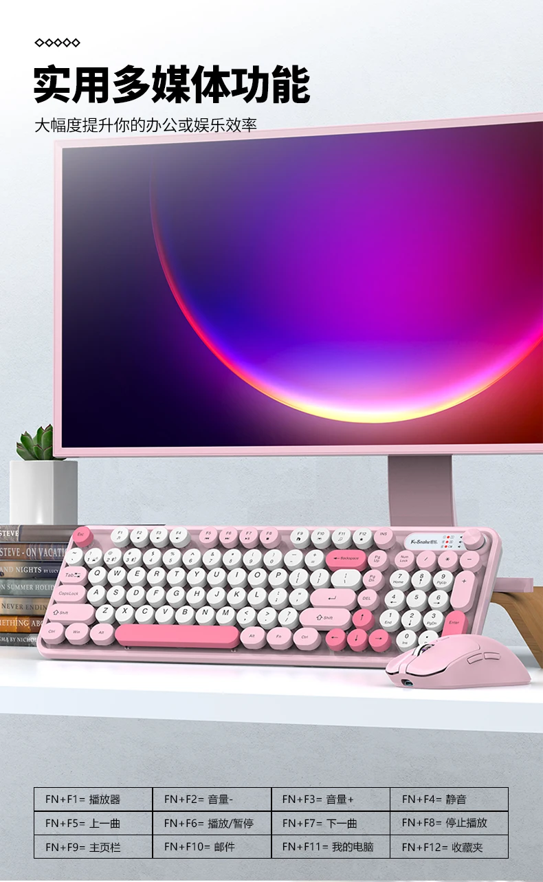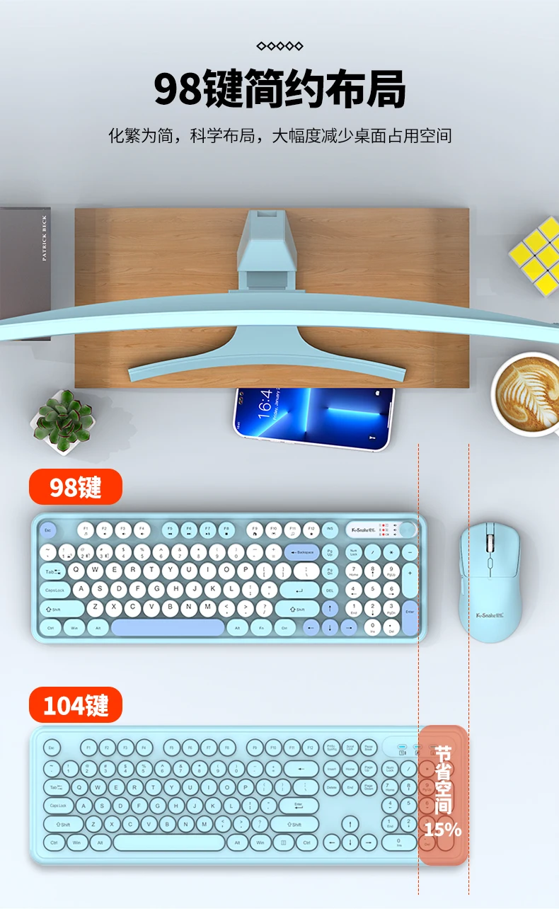 Enhance your office setup with the K-snake Wk300 Bluetooth wireless keyboard and mouse set featuring punk keycaps and a convenient volume knob.