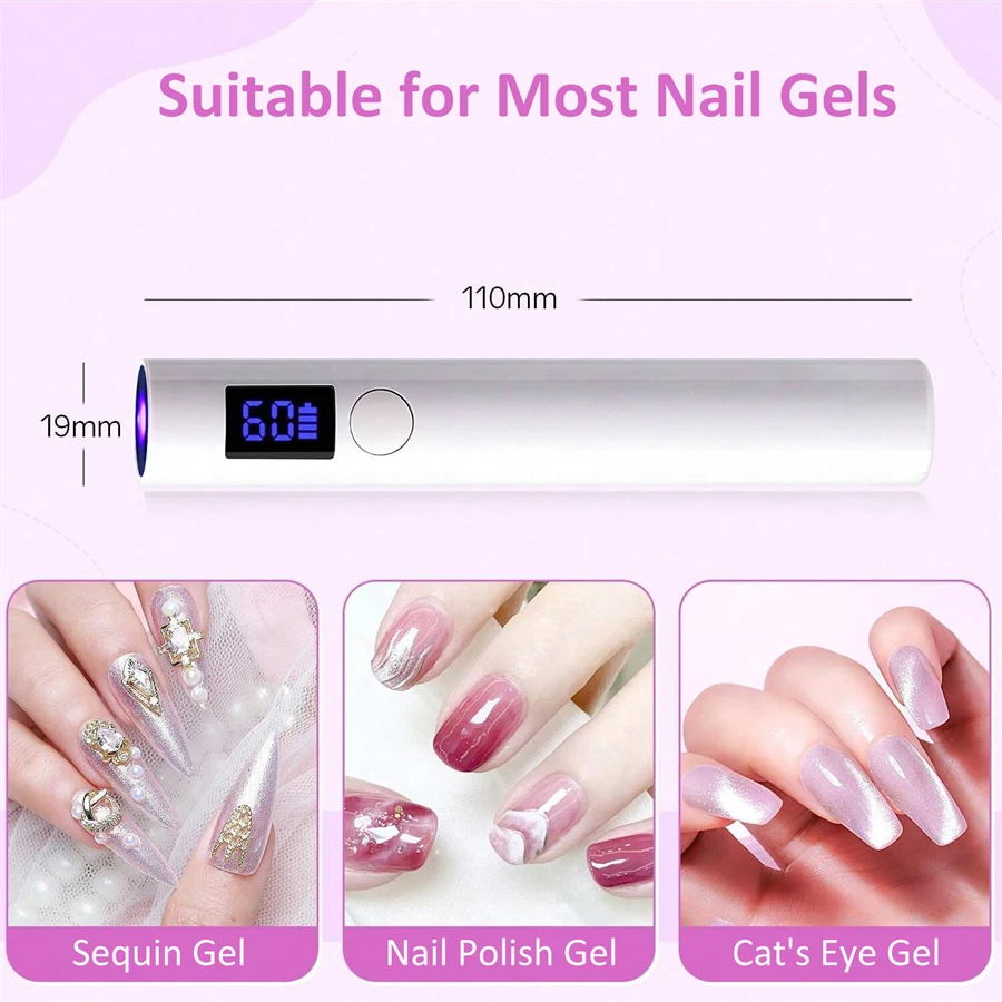 Get salon-quality gel nails at home with this rechargeable mini nail lamp. Its fast-curing technology and eye-friendly design make it a must-have for nail art enthusiasts. Suitable for both home and professional use.