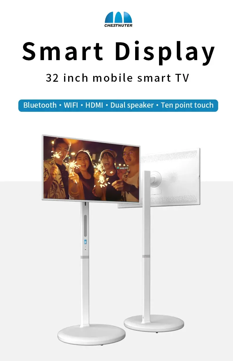 Smart 32-inch Android12 HD Touch LCD TV with Built-in Battery and Moveable Stand