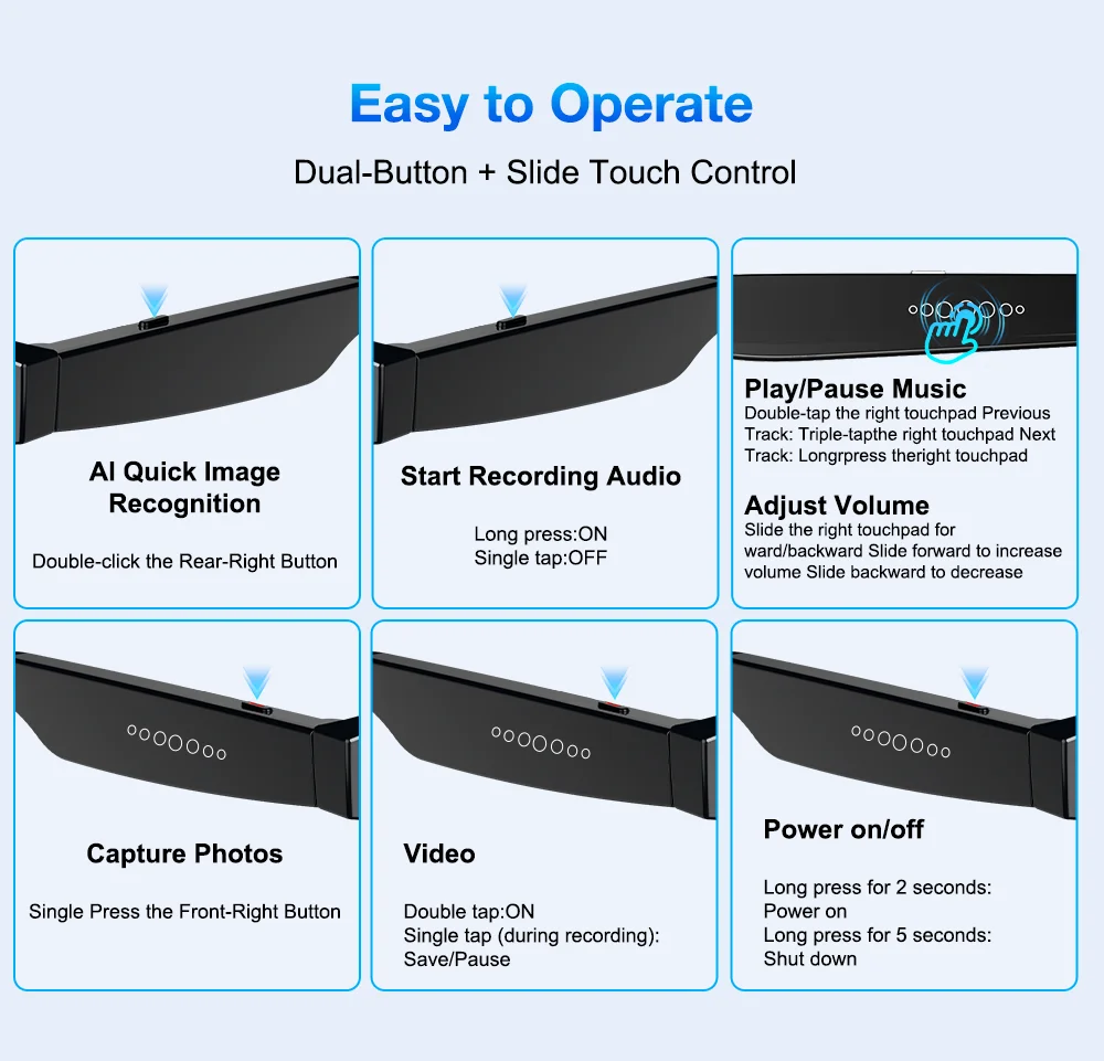 Smart Glasses with 800W Pixel Camera, AI Photo Recognition, Bluetooth Call, Voice Translation