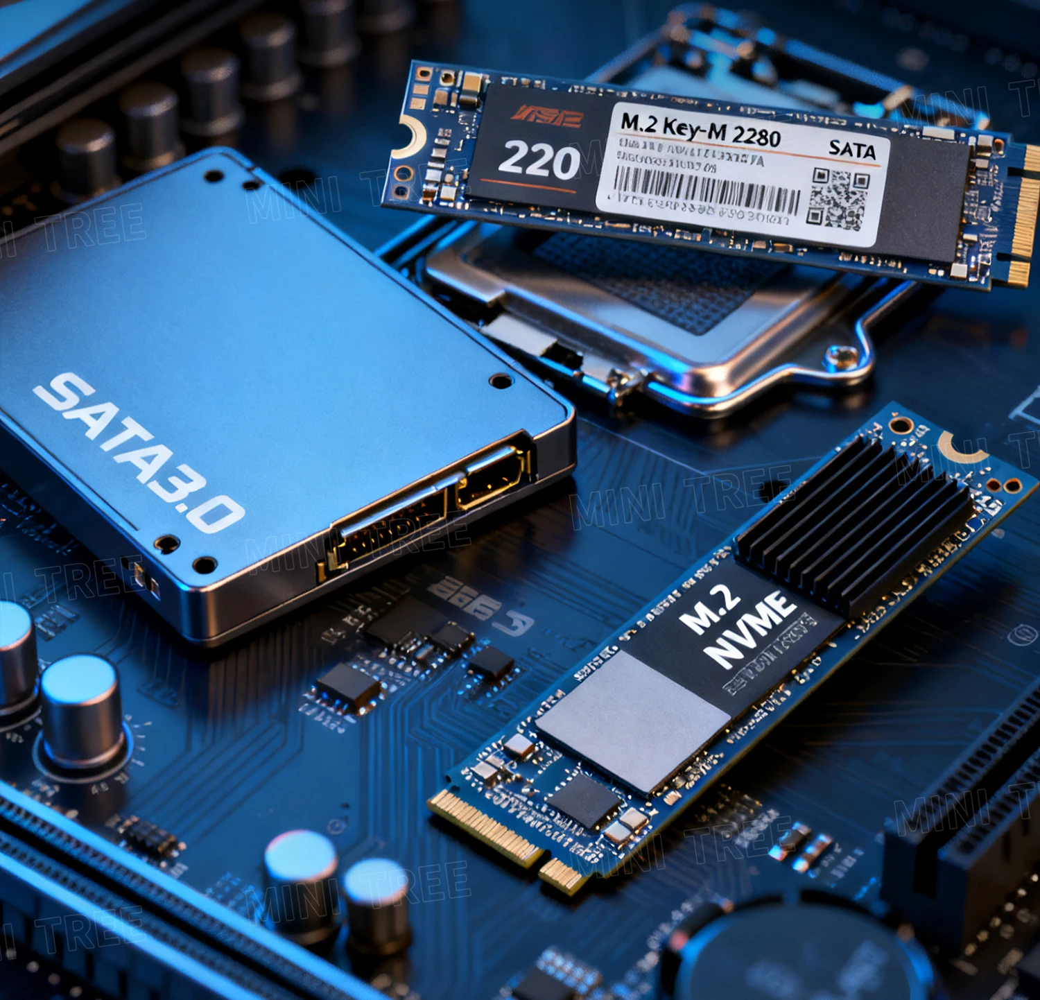 -Support 2xM.2 NVME/PCIEx4 2280 SSD+1xSATA3.0.