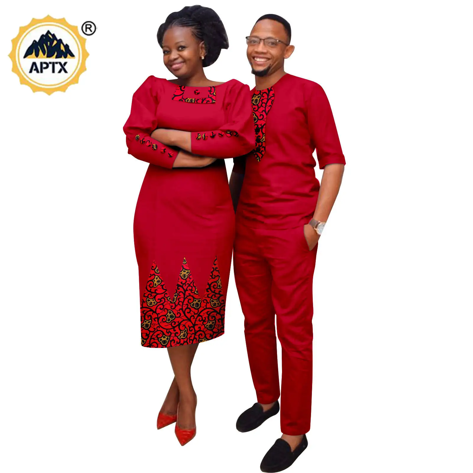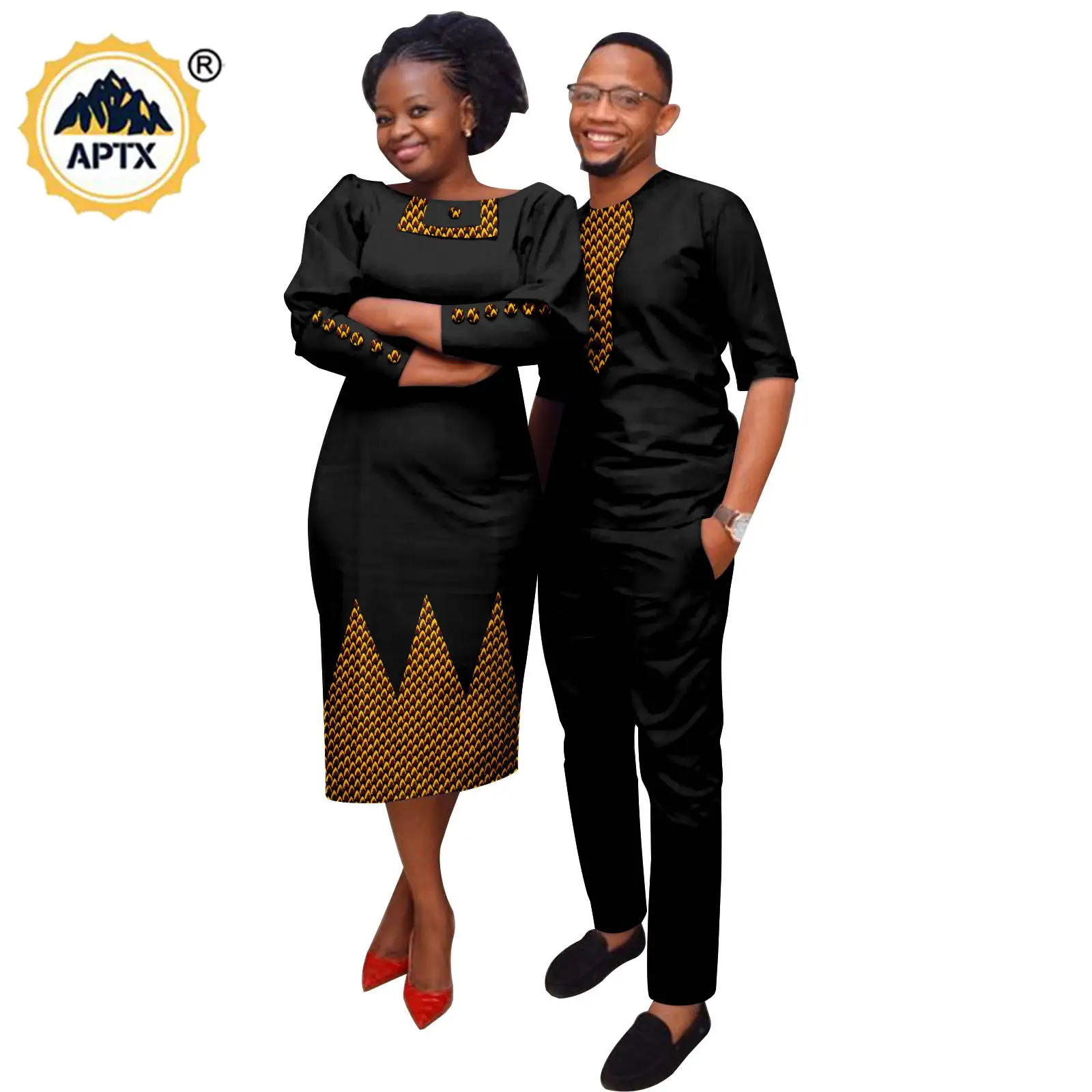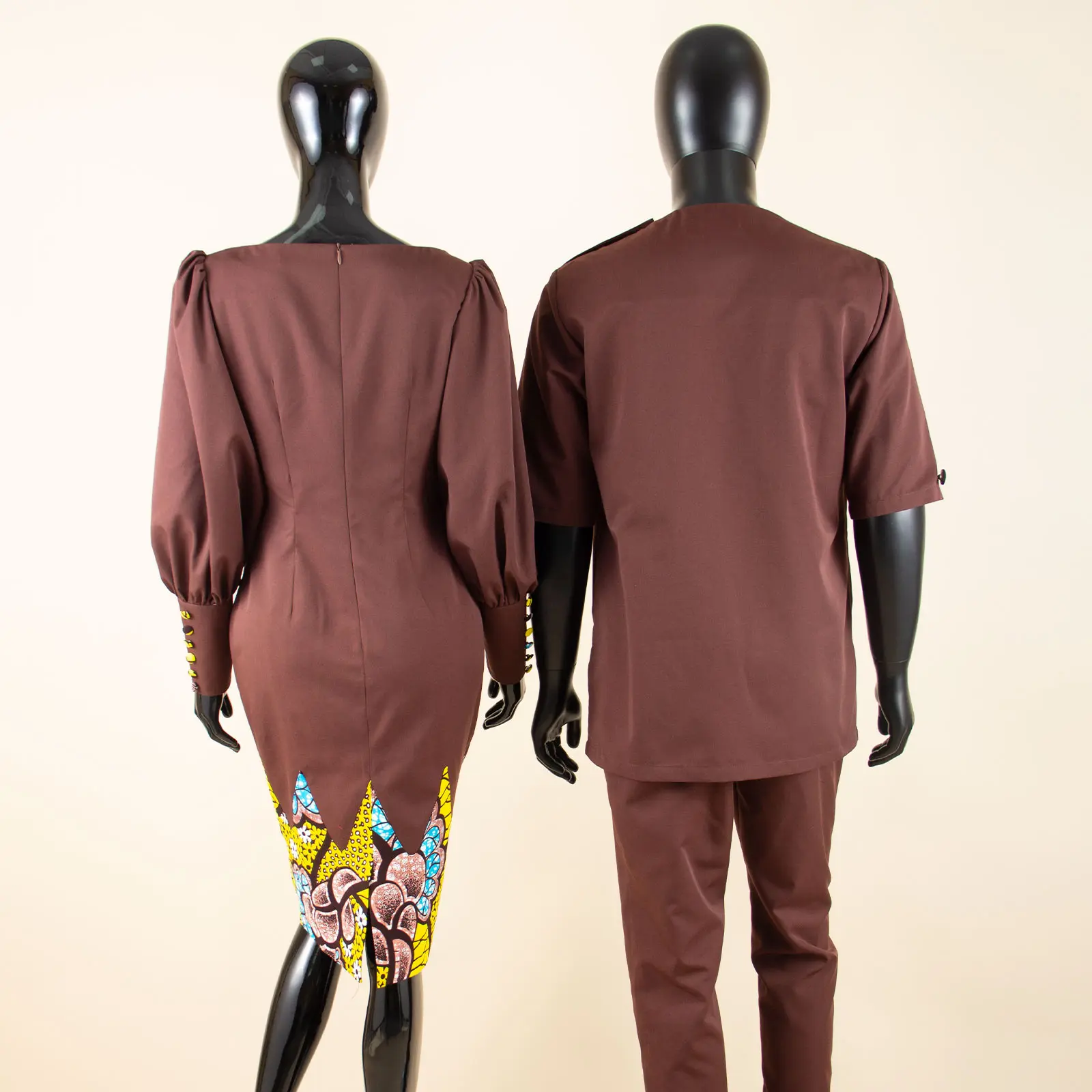 Step out in style with this matching couple outfit set featuring African-inspired designs. Perfect for weddings and special occasions, these Bazin Riche ensembles offer a unique and trendy look for you and your partner.