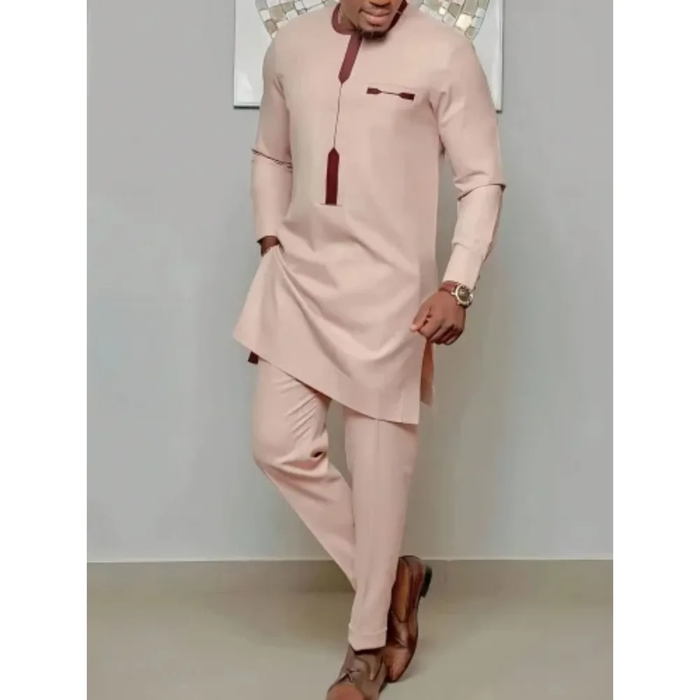 Elevate your style with this traditional African ethnic 2-piece outfit for men, designed for daily wear at parties and weddings.
