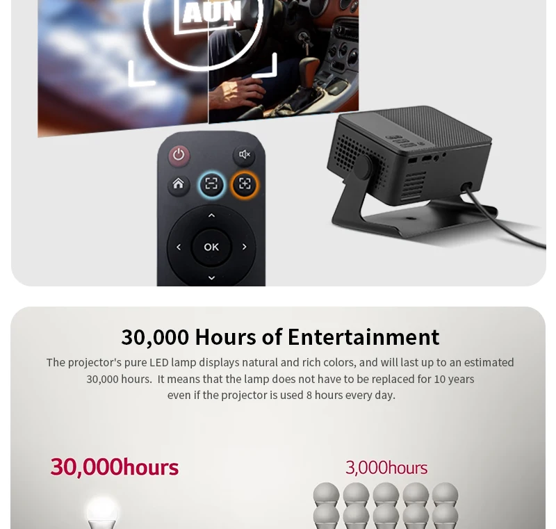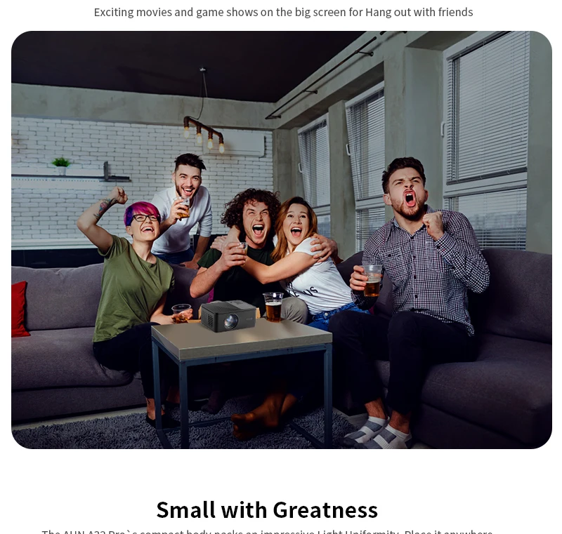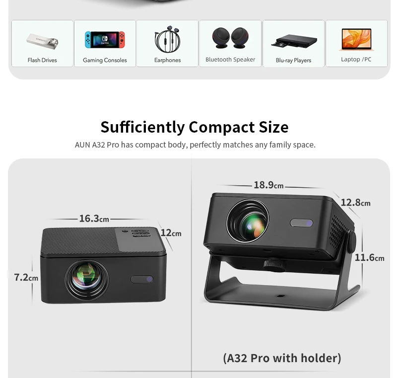 Experience a new level of entertainment with the AUN A32 Pro Projector Android Portable Cinema. This mini LED projector supports 4K and 1080P resolution, making it perfect for movie nights at home.