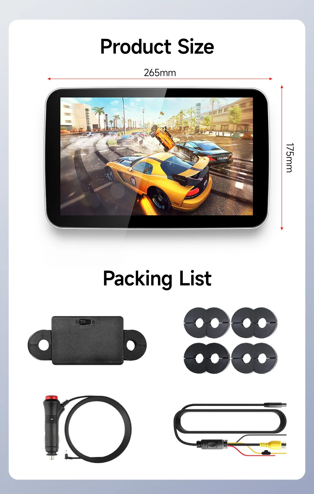 Enhance your in-car entertainment with this 10-inch Android 12 headrest monitor that offers wireless AirPlay and crystal-clear display quality. Create the ultimate rear seat entertainment experience with ease.