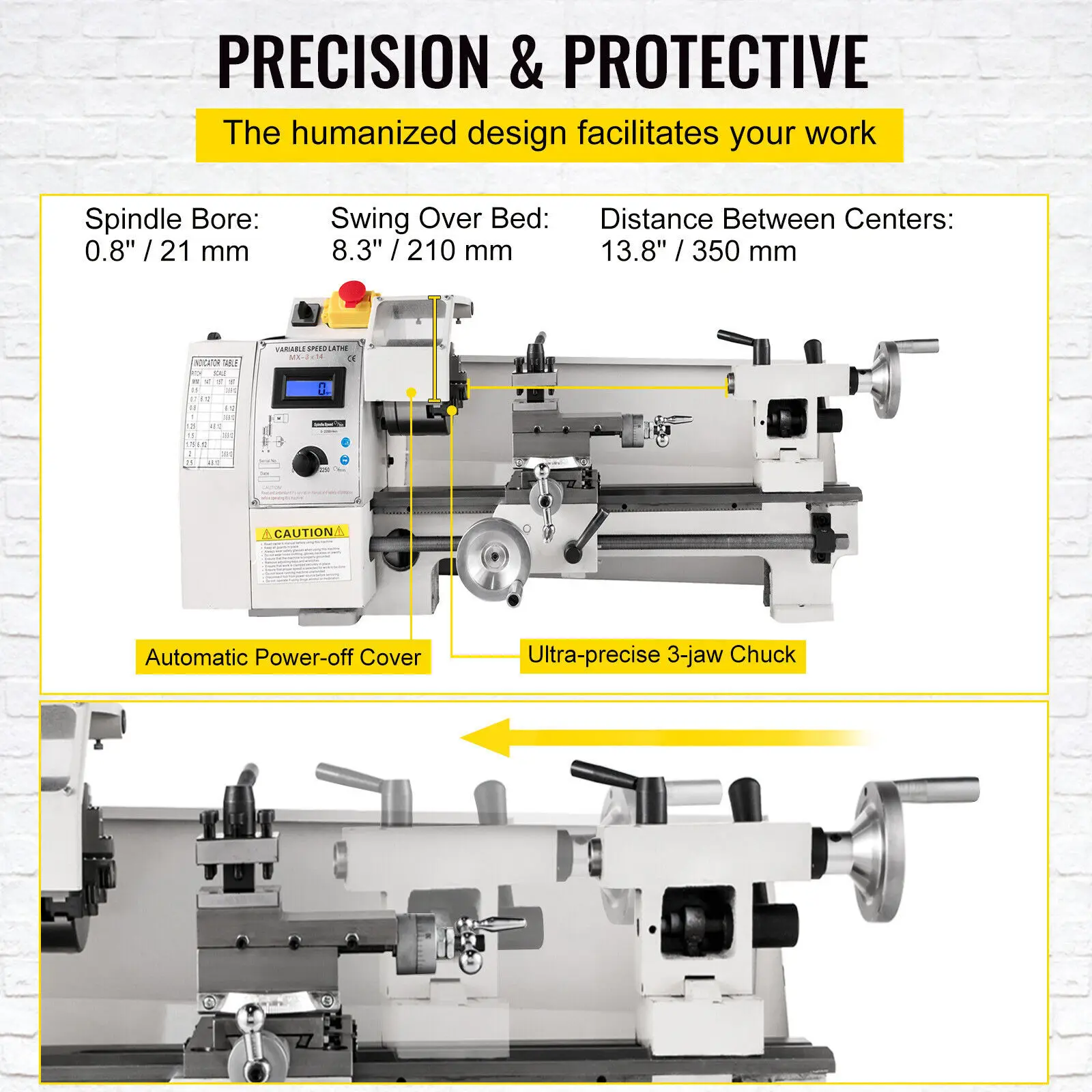 • Swing Over Bed: 8.3" / 210 mm