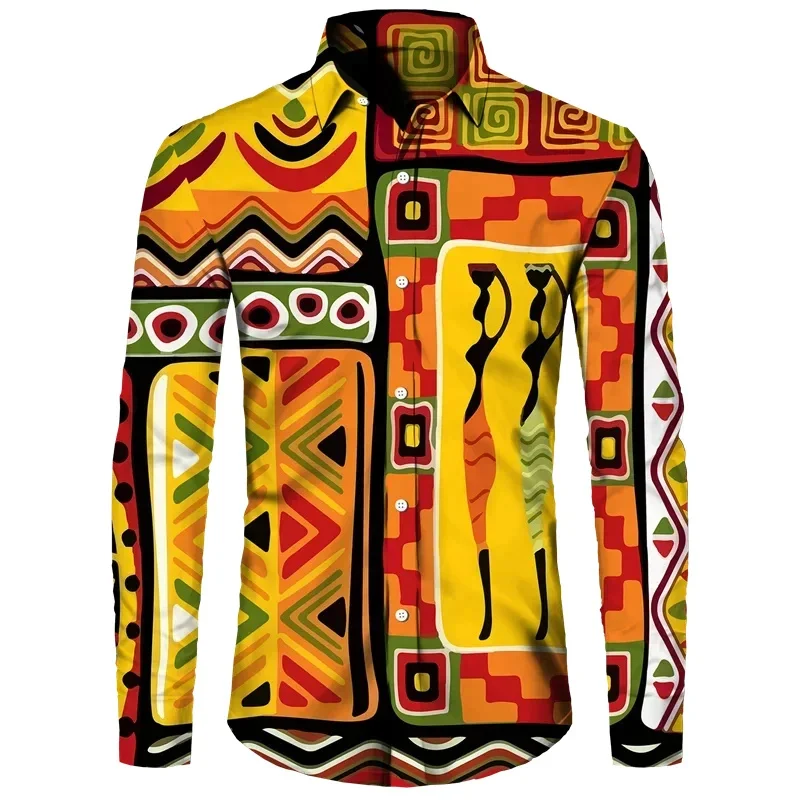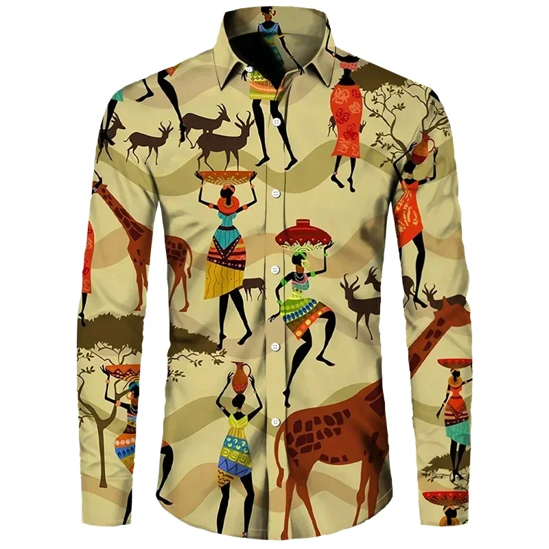 Bring a touch of African ethnic flair to your wardrobe with this vintage 3D print Hawaiian shirt for men. Perfect for a fashion-forward and casual look in any setting.