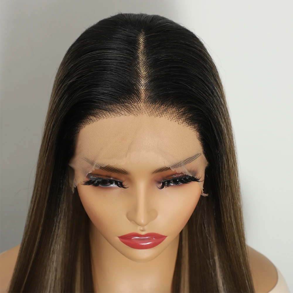 Achieve a natural and sleek look with this high-quality ombre wig featuring a comfortable fit and easy maintenance. The light brown Swiss lace blends seamlessly for a natural appearance, while the straight highlight texture offers versatility for various occasions.