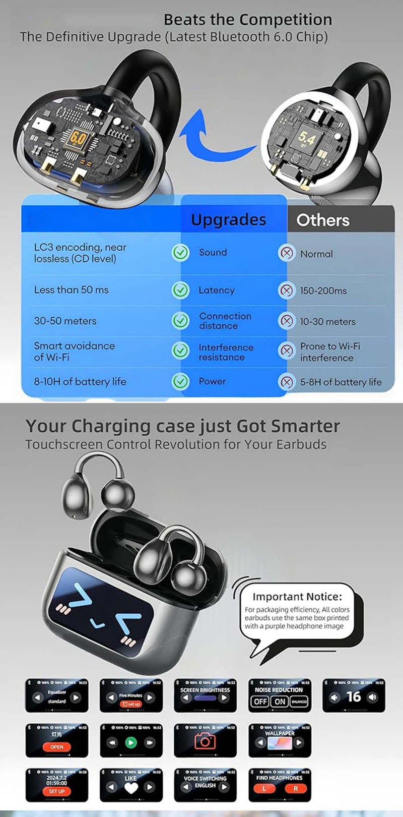 Experience seamless communication in over 150 languages with these innovative Wireless Earbuds that feature Real Time Translation and a user-friendly LCD Touch Screen.