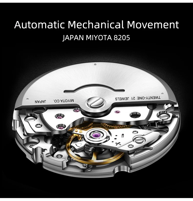 Movement: JAPAN MIYOTA 8205 Automatic mechanical movement